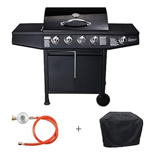 Grill-Set TAINO® Gasgrill BBQ Grillwagen inkl. Wetterschutzhaube und Gasregler 4 Edelstahl-Brenner 1 Seitenkocher Gas-Grill TÜV Farbe Schwarz (4+1)
