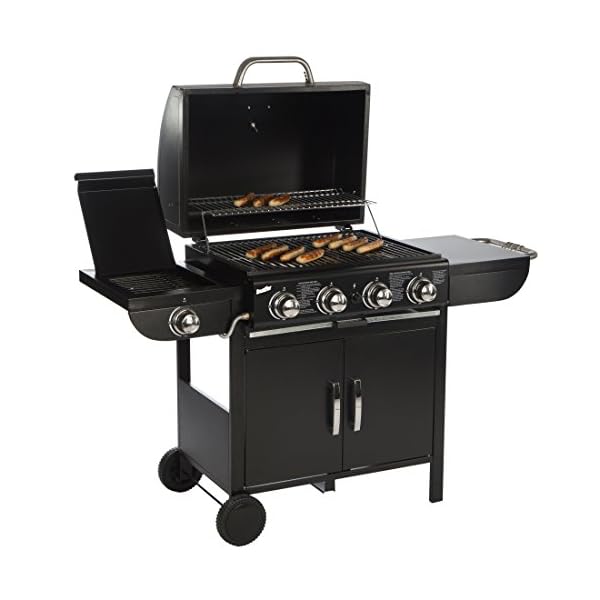 Großer Gasgrill aus Stahl für professionelles Barbecue, ideal für Slow Cooking, Räuchern/Smoken und indirektes Grillen – mit 4 Hauptbrennern und 1 Seitenbrenner