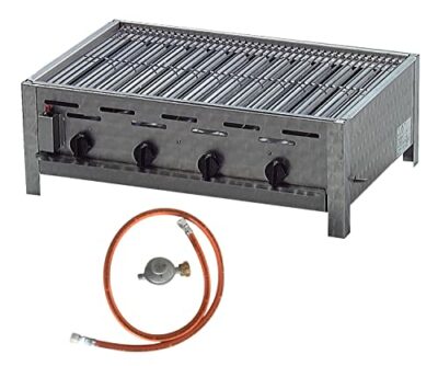HENDI Grill-Master Quattro, Elektronisches Zündung, mit Gasschlauch und Druckminderer, nur für Verwendung im Aussenbereich, 22kW(Hs), 1270x525x(H)840mm, Edelstahl 18/0, Large